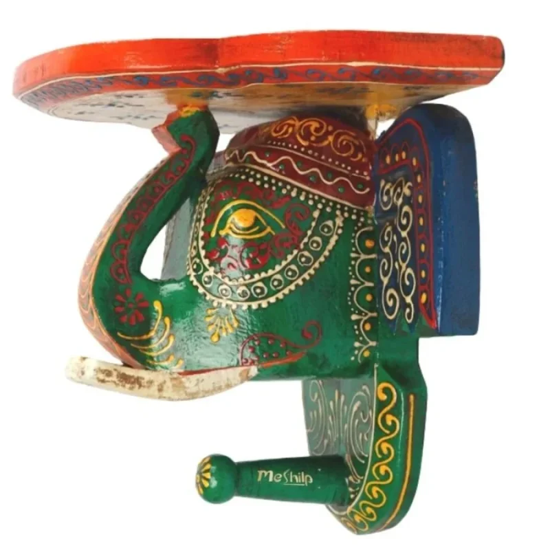Multi Color hand Embossed Elephant Face Wall Shelf